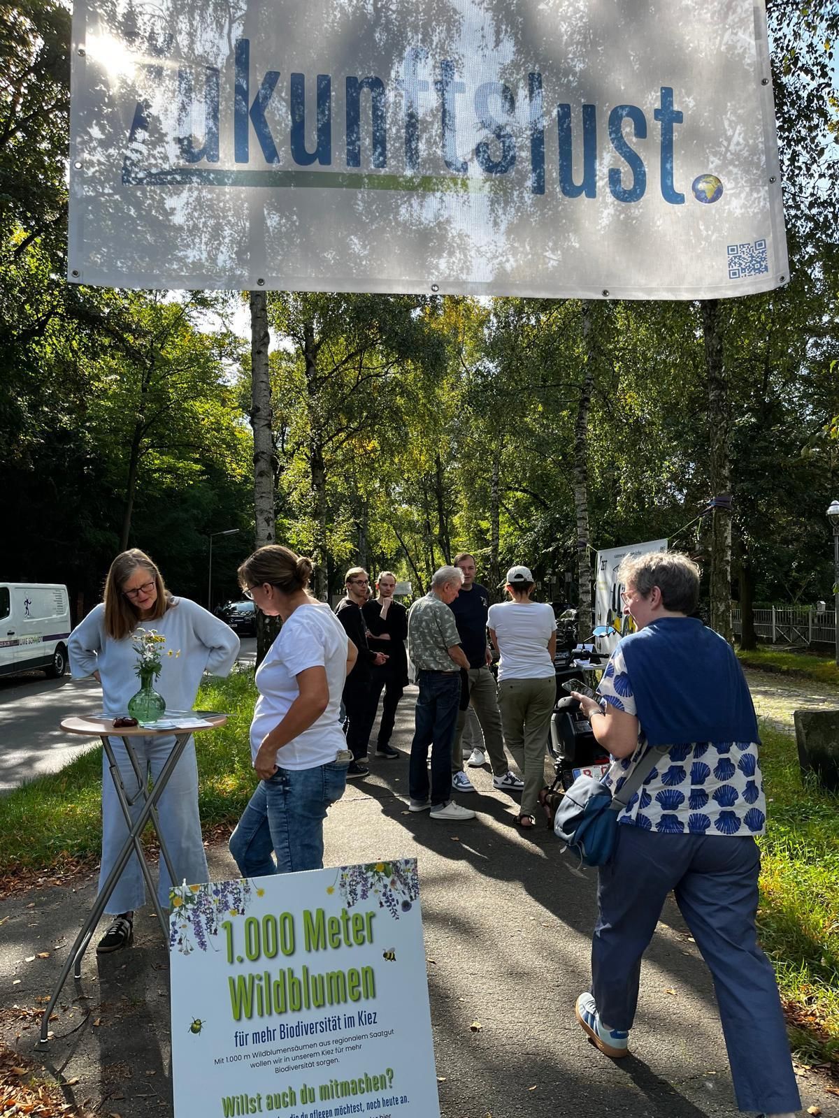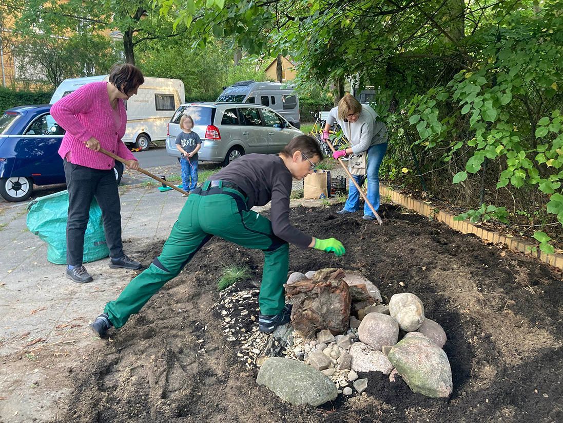 Im Rahmen der Klimaanpassungswoche haben wir mit vielen großartigen Menschen an der Boothstraße Ecke Marienstraße ein kleines Habitat angelegt. Hier, wo einst ein Baum gestanden haben muss, haben wir einen geeigneten Platz gefunden, um einen weiteren kleinen Lebensraum zu schaffen. Unser erstes Habitat.