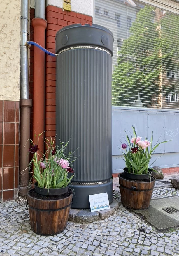 Nicht alle von uns haben das Privileg in Wohneigentum zu wohnen und damit auch nicht die Möglichkeit einfach eine Regensäule zu installieren. Ein schönes Beispiel aus der Innenstadt zeigt jedoch, dass Vieles möglich ist, wenn man sich engagiert. So hat Jörg Winners, Sprecher der Initiative Fritschestraße, in Zusammenarbeit mit dem Bezirksamt Charlottenburg-Wilmersdorf und der Initiative Wassertanke erreicht, dass dort auf den Bürgersteigen zwei Wassersäulen für die Bewässerung des Straßengrüns installiert wurden.